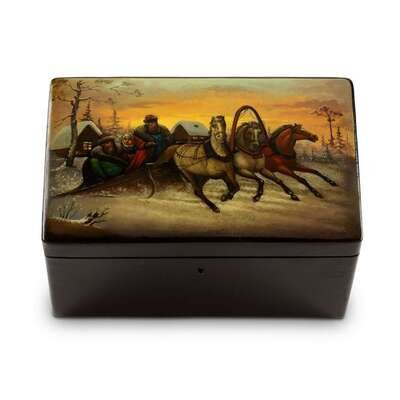 A Russian Lacquer Locking Tea Caddy "Winter troika Scene" Vishnyakov & Sons. Ostashkovo, ca.1870
