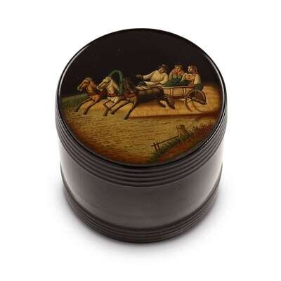 A Russian Lacquer Tea Caddy "Three in a Troïka" Vishnyakov & Sons, Ostashkovo, ca. 1880