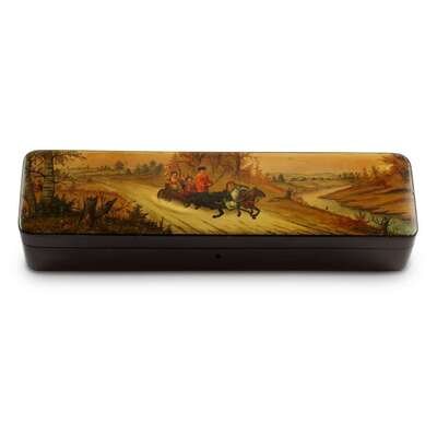 A Russian Lacquer Casket “Autumn: Peasants in a Troïka” Vishnyakov & Sons, Ostashkovo, ca. 1880-1890