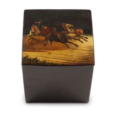 A Russian Lacquer Box “Racing Troïka” Vishnyakov & Sons, Ostashkovo, ca. 1880