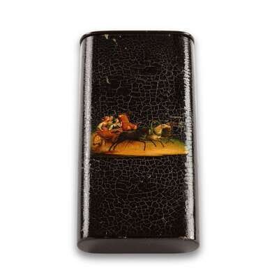 A Russian Lacquer Etui Form Papirossi Case "A Troïka Ride" Lukutin Manufactory, Fedoskino, ca. 1843-1863