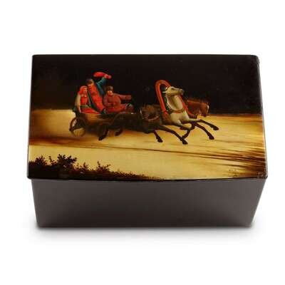A Russian Lacquer Box "Troika Ride" Vishnyakov & Sons, Ostashkovo, ca. 1870