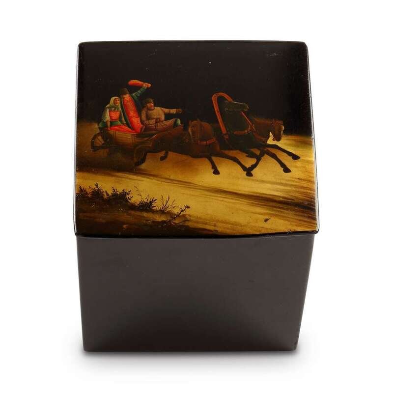 A Russian Lacquer Tobacco Box "Troika Ride" Vishnyakov & Sons, Ostashkovo, ca. 1880