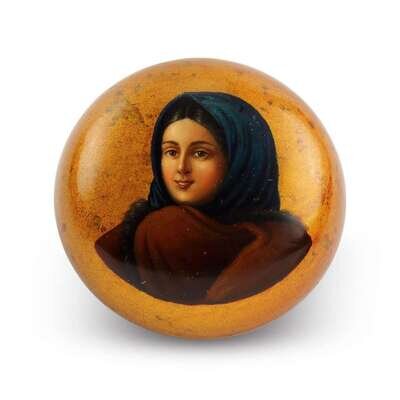 A Russian Gold Ground Lacquer Snuff Box "Russian Beauty" Lukutin Factory, Fedoskino, ca.1880-1902