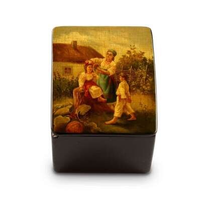 A Russian Lacquer Box “Reflection in the Glass” Vishnyakov & Sons, Ostashkovo, ca. 1877-1880