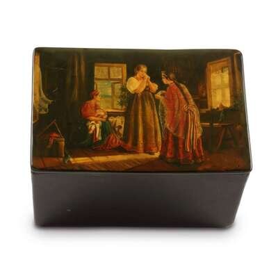 A Russian Lacquer Box “The Matchmaker’s Message” Vishnyakov & Sons, Ostashkovo, ca. 1880-1890