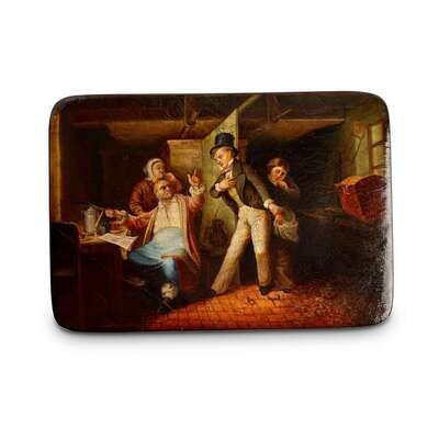 A Russian Lacquer Box "The Engagement Refused" Vishnyakov & Sons, Ostashkovo, ca. 1880-1890