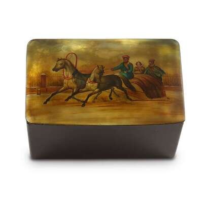 A Russian Lacquer Box “Emperor Alexander II and His Consort in a Troïka” Vishnyakov & Sons, Ostashkovo, ca. 1880