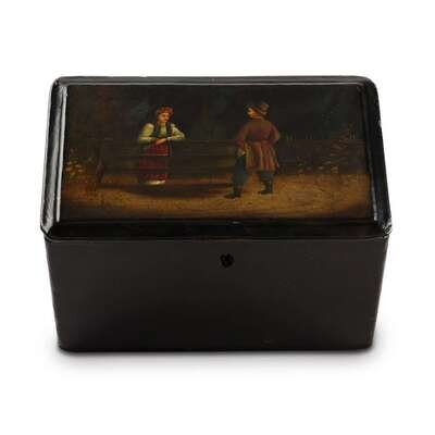 A Russian Lacquer Box "Sweethearts at the Fence" Vishnyakov & Sons, Ostashkovo, ca. 1880