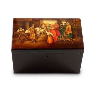 A Russian Lacquer Casket "Farewell: Departure for the Army" Vishnyakov & Sons, Ostashkovo, ca. 1870
