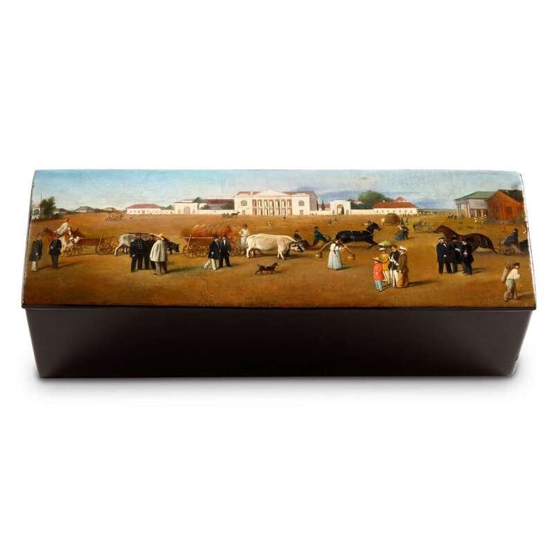 A Russian Lacquer Box depicting Krendovsky's "The Alexander Square in Poltava" Vishnyakov & Sons, Ostashkovo, 1870-1880