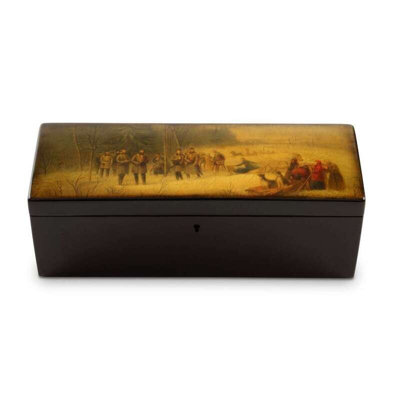 A Russian Lacquer Box "A Rest During an Imperial Hunt" Vishnyakov & Sons, Ostashkovo, ca. 1890