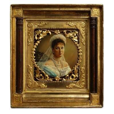 A Russian Lacquer Portrait Plaque "Empress Alexandra Feodorovna of Russia" unknown lacquer artist, likely moscow, 20th century