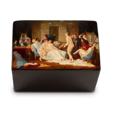 A Russian Lacquer Snuffbox after Zhuravlev's "Meeting of the Girls at the Baths" Vishnyakov & Sons, Ostashkovo, ca. 1870-1880
