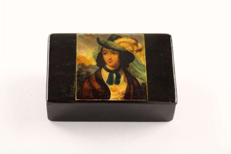 A Russian Lacquer Tobacco Box, possibly after Briullov Lukutin Manufactory, Fedoskino, ca. 1828-1843