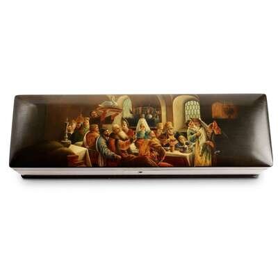 A Russian Lacquer Box after Makovsky's "A Boyar Wedding Feast" Vishnyakov & Sons, Ostashkovo, 1883-1885