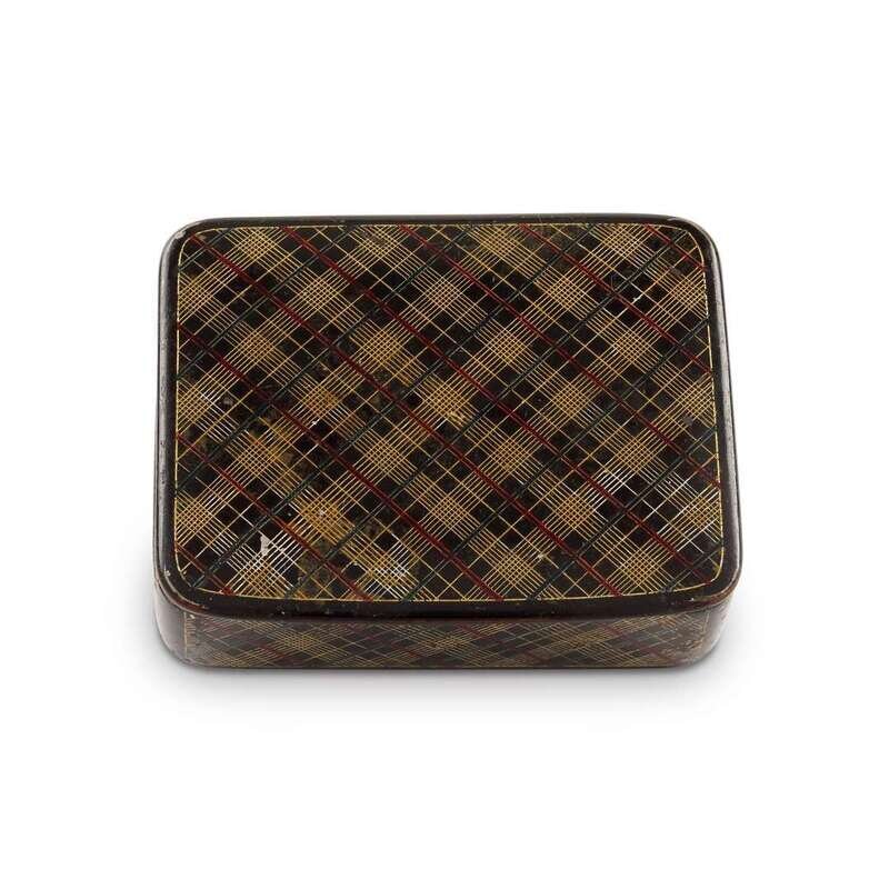 A Russian Shotlandka-ground Lacquer snuffbox Lukutin Manufactory, Fedoskino, ca. 1896-1902