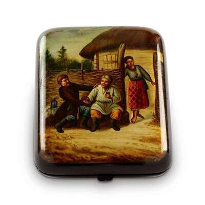 A Russian Lacquer Change Purse "Listening at the Fence" Vishnyakov & Sons, Ostashkovo, ca. 1880