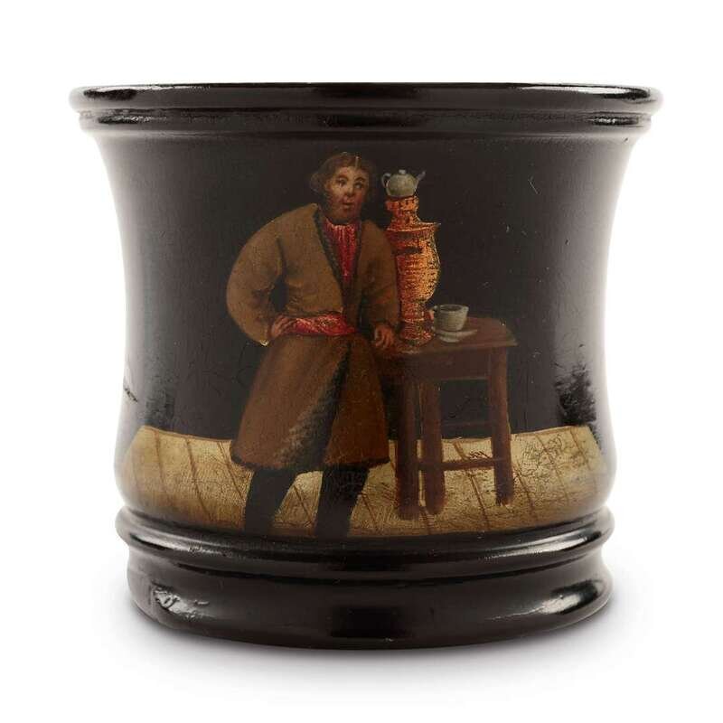 A Russian Lacquer Cup "Man at the Samovar" Unknown maker, Likely Moscow, ca. 1880