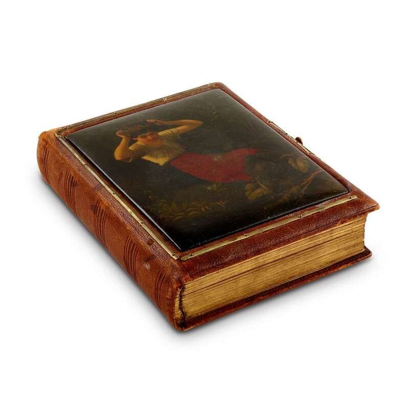 A Russian Lacquer Panel-mounted Leather Photograph Album Lukutin Manufactory, Fedoskino, ca. 1896-1902