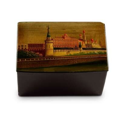 A Russian Lacquer box "View of the Great Kremlin Palace from Across the Moskva River" Attributed to the Pizhov Factory , ca. 1880