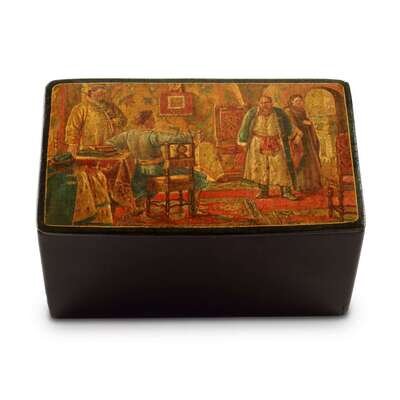 A Russian Lacquer Box "A Boyar Scene" Vishnyakov & Sons, Ostashkovo, ca. 1870-1880