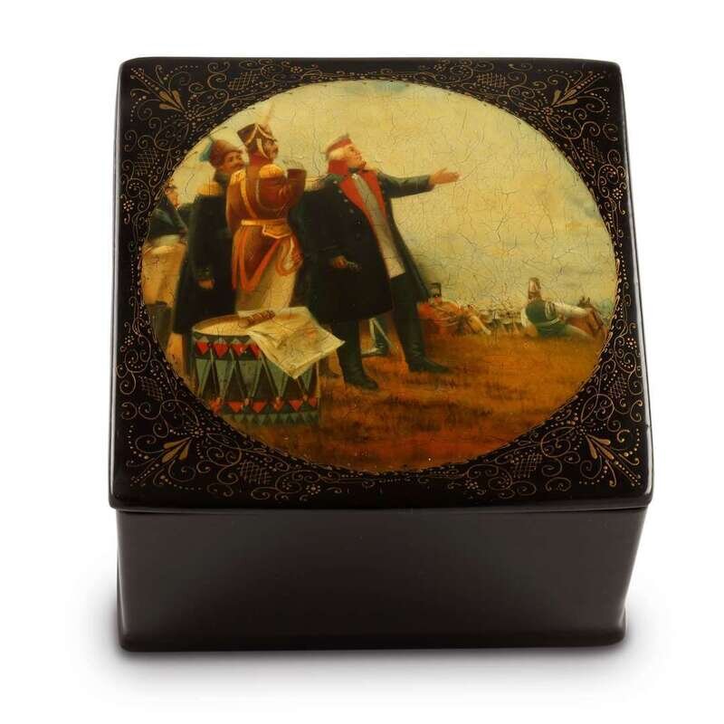 A Soviet Lacquer Box after Gerasimov's "Kutuzov at the Battle of Borodino" 20th century