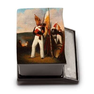 A Russian Lacquer Matchbox with Strike “Grenadier with Regimental Flag” Partially by the Lukutin Manufactory, Fedoskino, ca. 1888-1902