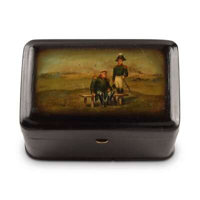 A Russian Lacquer Box, “Kutuzov at rest” Vishnyakov & Sons, Ostashkovo, ca. 1880-1890