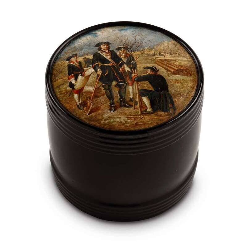 A Russian Lacquer Tea Caddy after Khudoyarov’s “Emperor Peter the Great at Work” Vishnyakov & Sons, Ostashkovo, ca. 1870