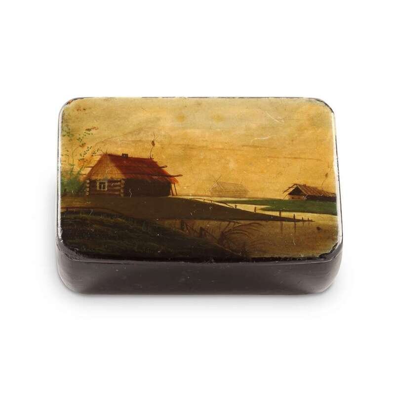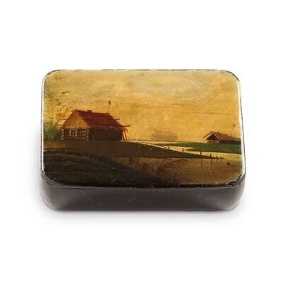 A Russian Lacquer Snuffbox "Rural Sunset" Vishnyakov & Sons, Ostashkovo, circa 1880
