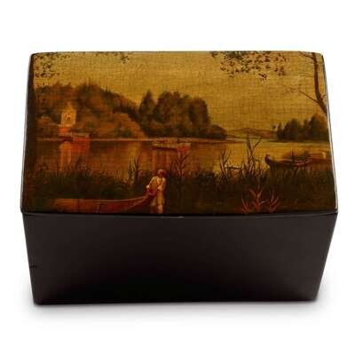 A Russian Lacquer Snuffbox "Rural Landscape" Vishnyakov & Sons, Ostashkovo, ca. 1870-1880