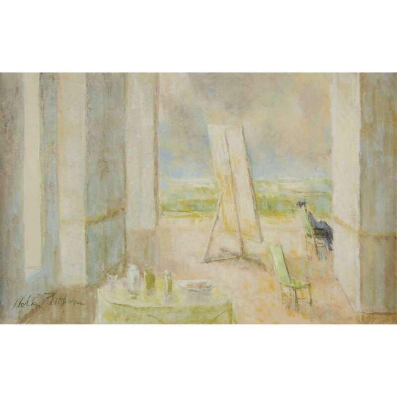 HOBSON PITTMAN (AMERICAN 1900–1972) "STUDIO WITH YELLOW TABLE AND EASEL"