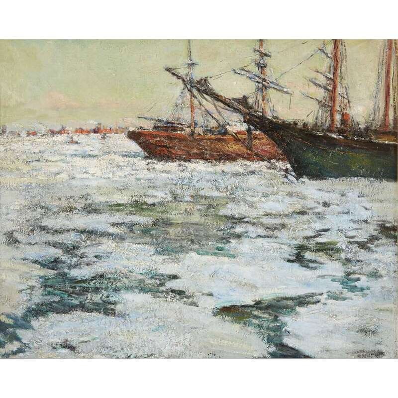 FREDERICK R. WAGNER (AMERICAN 1864-1940) "ICEBOUND ON THE DELAWARE"