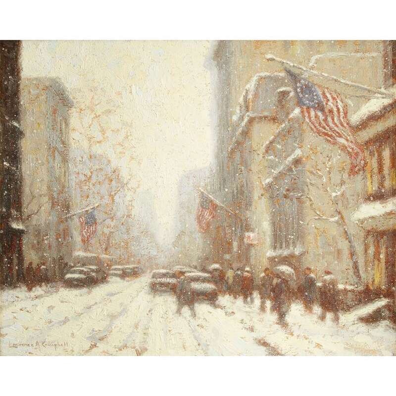 LAURENCE A. CAMPBELL (AMERICAN B. 1939) "SNOW STORM, ARCH STREET, PHILADELPHIA"