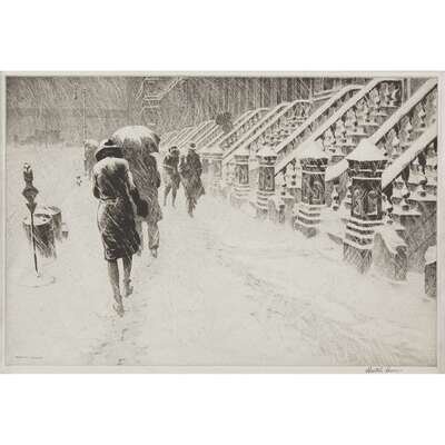 MARTIN LEWIS (AMERICAN 1881-1962) "STOOPS IN THE SNOW"