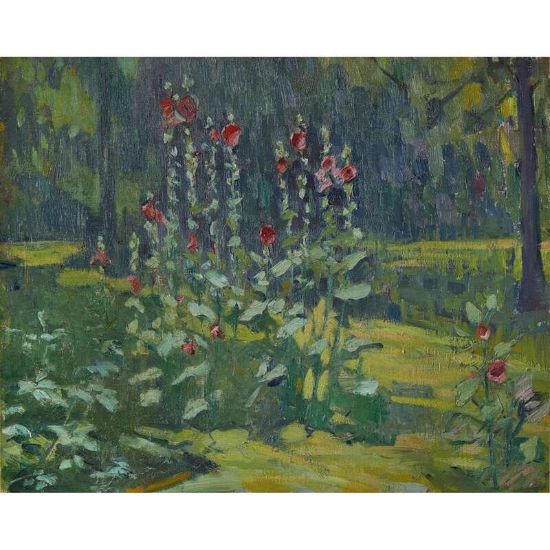 GERTRUDE FISKE (AMERICAN 1879–1961) HOLLYHOCKS