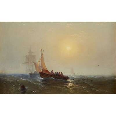 EDWARD MORAN (AMERICAN 1829–1901) CAST NET FISHING AT SUNSET