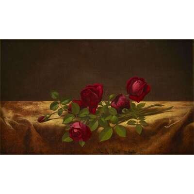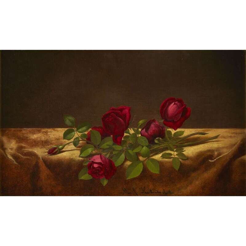 MARTIN JOHNSON HEADE (AMERICAN 1819-1904) "ROSES LYING ON GOLD VELVET"