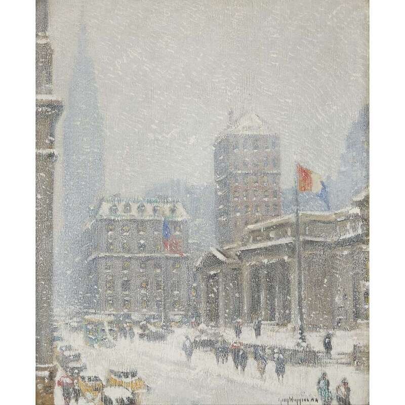 GUY CARLETON WIGGINS (AMERICAN 1883-1962) "THE LIBRARY IN WINTER"