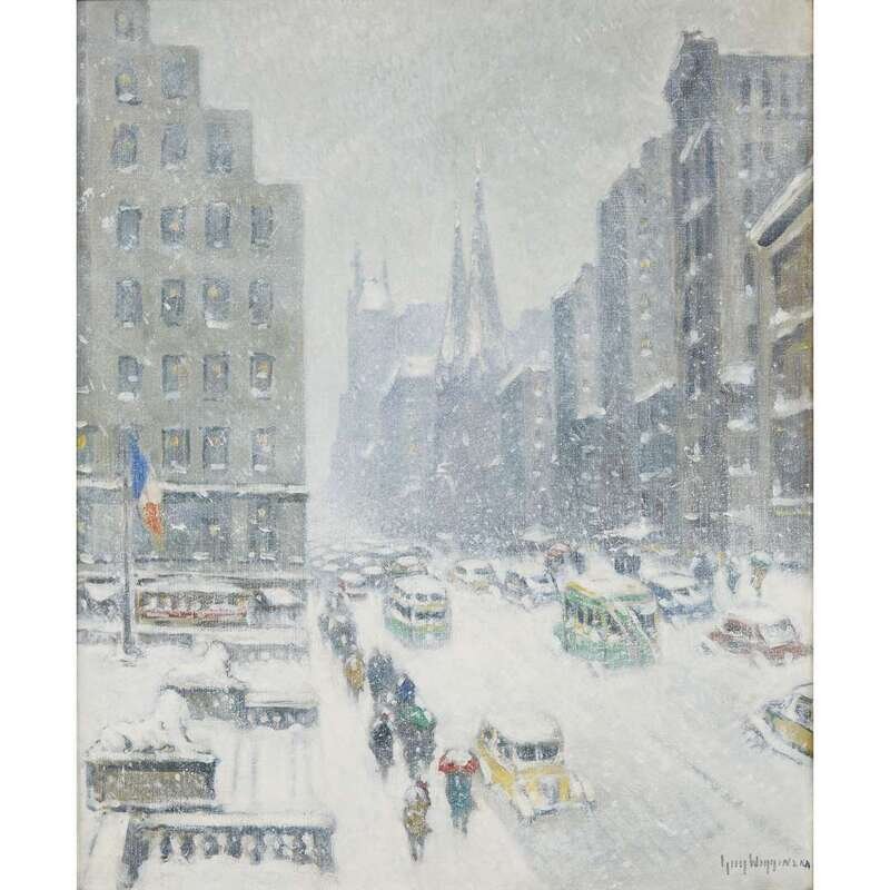 GUY CARLETON WIGGINS (AMERICAN 1883-1962) "AT THE LIBRARY NEW YORK"