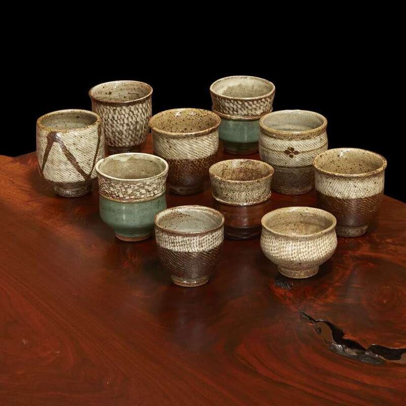 TATSUZO SHIMAOKA (JAPANESE, 1919-2007) GROUP OF TEN TEA CUPS, JAPAN, 1958