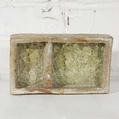 Stoneware with cream and pooled crackle glaze.
