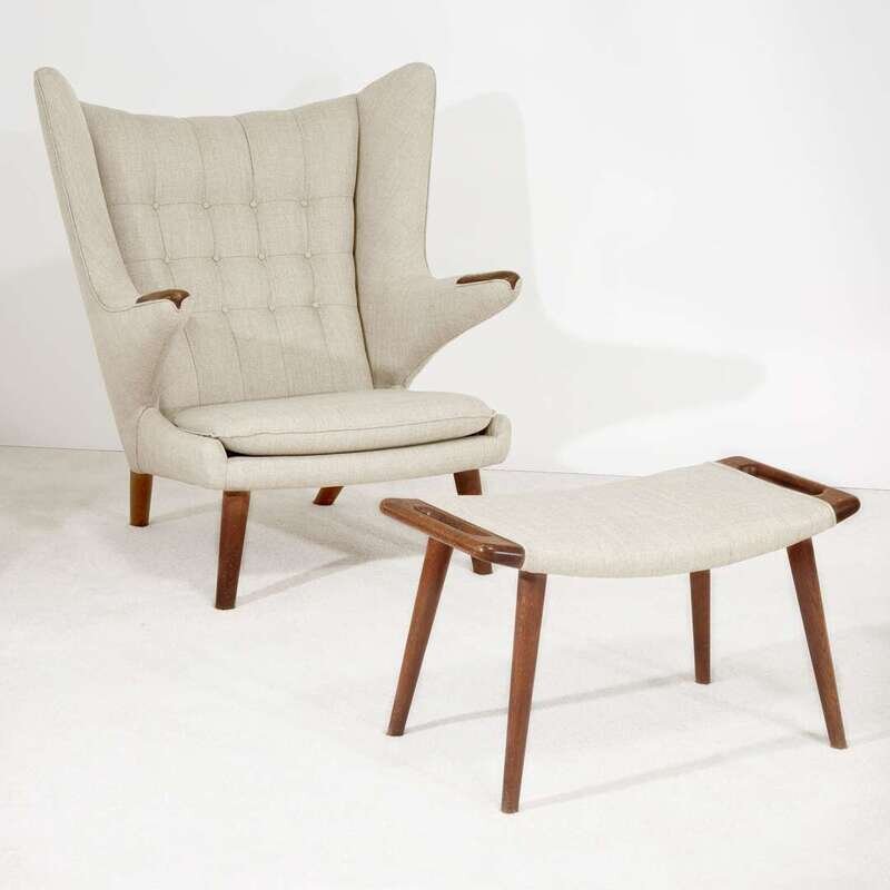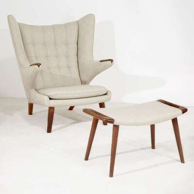 HANS WEGNER (DANISH, 1914-2007) PAPA BEAR CHAIR AND OTTOMAN, A.P. STOLEN, DENMARK, 1950