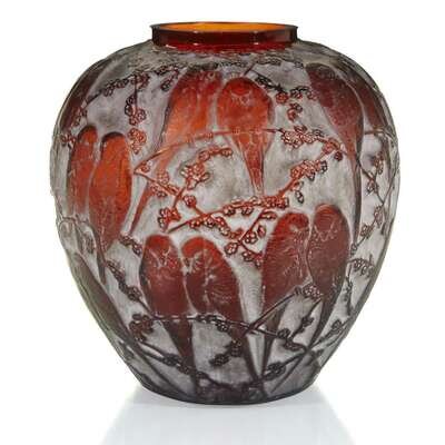 RENÉ LALIQUE (FRENCH, 1860-1945) "PERRUCHES" VASE, FRANCE, DESIGNED 1919
