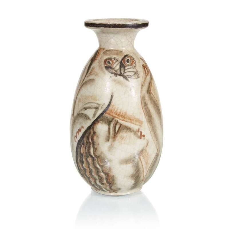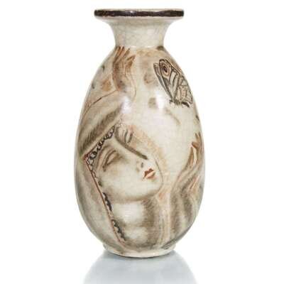 RENÉ BUTHAUD (FRENCH, 1886-1986) WOMAN AND BUTTERFLY VASE, FRANCE, CIRCA 1925