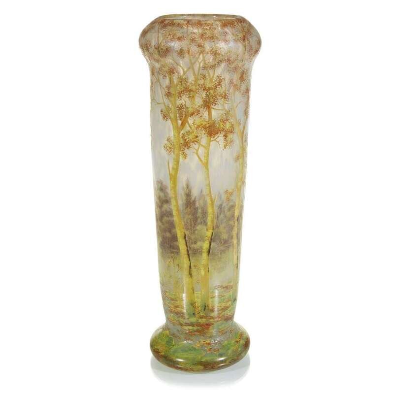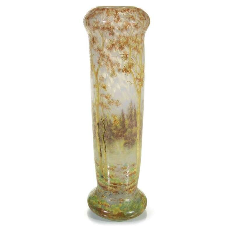 DAUM TALL SCENIC VASE WITH WOODED LANDSCAPE, FRANCE, CIRCA 1898