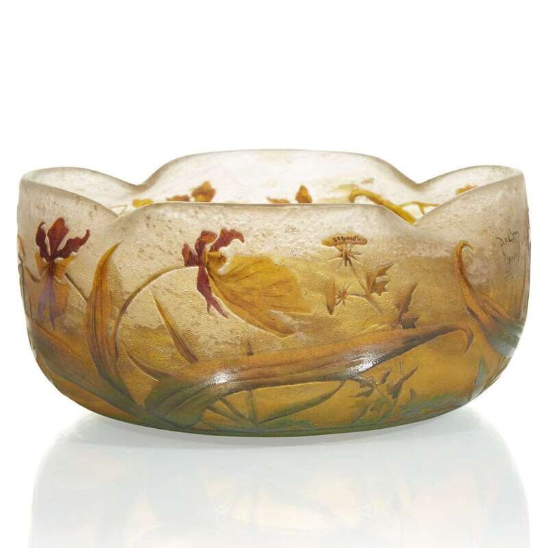 Acid-etched and enameled glass Each with enameled signature: "Daum Nancy" with Cross of Lorraine.