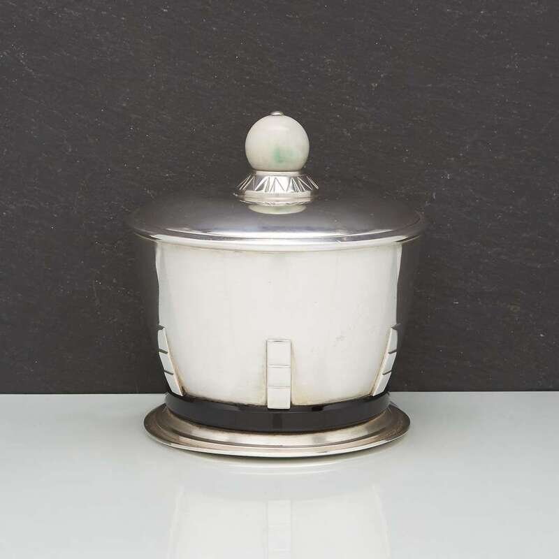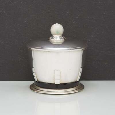 Sterling silver, jadeite, glass Marked: "JEAN E. PUIFORCAT MADE IN FRANCE" with maker's mark and French guarantee mark.