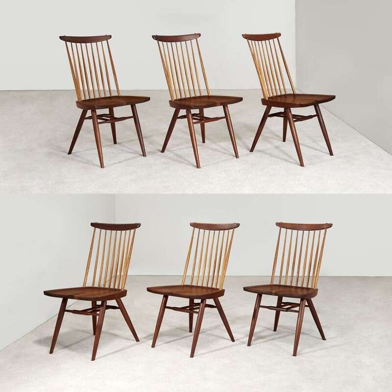 GEORGE NAKASHIMA (AMERICAN, 1905-1990) SET OF SIX NEW CHAIRS, NEW HOPE, PENNSYLVANIA, 1969